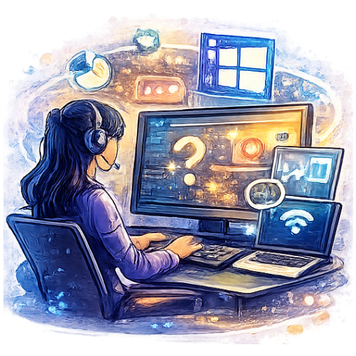 Nous prenons la main à distance pour assister vos utilisateurs, résoudre les blocages sur Windows et les applications, assurer les mises à jour logicielles et garantir un environnement de travail fluide.